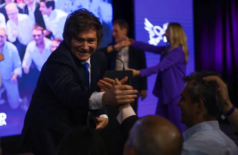 아르헨티나의 하비에르 밀레이 대통령이 2025년 10월 26일 부에노스아이레스에서 열린 중간 선거에서 라 리베르타드 아반사당이 승리한 후 시민들을 맞이하며 반응을 보이고 있다. (출처: REUTERS/Cristina Sille)